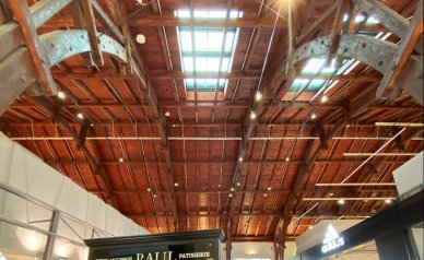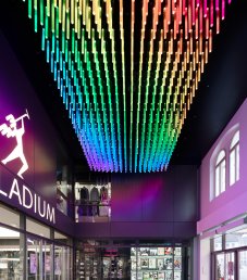 Prvky kreativního designu jsou uplatněny na průčelích obchodů, na podlahových krytinách, zábradlích, eskalátorech, sloupech a stropech. Obchodní centrum je osvětleno přirozeným světlem. Součástí interiérů jsou tři nejvýznamnější archeologické nálezy. Využita jsou také například kamenná koryta z budovy bývalé jízdárny, a to jako součásti fontány ve vstupní hale kancelářské budovy.